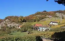 Vue d'Ollon depuis le sud, vignes du côté des Arnoux.