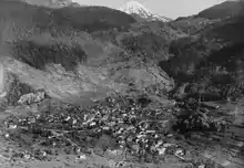 Le village d'Ollon avec les dents du Midi en arrière-plan. | ||||