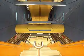 L'artiste Olaf Metzel (de) crée à l'entresol l'installation Erst rechts, dann links, dann immer geradeaus, qui se compose de trois glissières de sécurité d'autoroute.