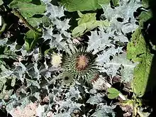 Onopordum acaulon L., l'Onopordon à tige courte ou Onopordon sans tige[2],[3], est une espèce de plantes dicotylédones de la famille des Astéracées. Il s'agit d'un chardon dont la floraison a lieu au creux de la rosette de feuilles, contrairement aux autres espèces du même genre qui développent de hautes tiges.