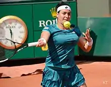 À Roland-Garros, elle élimine l'Italienne Lucia Bronzetti (6-4, 6-1), la locale Océane Dodin (6-2, 6-3), dernière française en lice[118], et la Serbe Olga Danilović (4-6, 6-4, 6-2)[119], toutes deux hors du Top 100 pour rejoindre comme en 2020 et 2021 les huitièmes de finale Porte d'Auteuil. Elle retrouve l'Américaine Bernarda Pera, novice à ce stade. Elle l'écarte (6-3, 6-1)[120] et part en quart de finale pour la première fois de sa carrière dans le tournoi. Contre Beatriz Haddad Maia, le match est plus compliqué et elle est renversée après un long duel (6-3, 6-75, 1-6)[121].