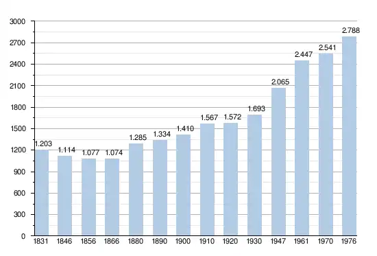 - Sources : INS, Rem. : 1831 jusqu'en 1970 = recensements, 1976 = nombre d'habitants au 31 décembre[2].