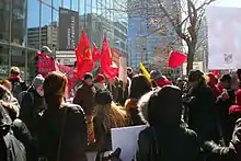 Le Parti communiste du Canada[31], le Parti marxiste–leniniste du Canada[32] et le Parti communiste révolutionnaire du Canada[33] s'opposent officiellement à l'intervention canadienne en Irak et en Syrie.