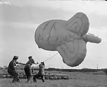 En 1937, les Britanniques étudient les effets d’un filin traînant sous un ballon lorsqu'il vient à entrer en contact avec des fils électriques. Le but est de connaître les dommages que pourrait causer un ballon de barrage dont les amarres se rompraient. Durant l’hiver 1939-1940 (la « drôle de guerre »), certains officiers de l'état-major proposent de lâcher des ballons depuis la France vers les troupes allemandes, en y attachant des bombes. Un transmetteur à bord permettrait de les suivre par triangulation, et un récepteur servirait à activer un mécanisme de largage des bombes[2]. L’idée devient caduque après la déroute de .