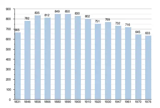 - Sources:INS, Rem:1831 jusqu'en 1970=recensements, 1976= nombre d'habitants au 31 décembre