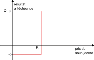 Profil de résultat d'un acheteur d'un call binaire de prime p, de prix d'exercice K et de flux fixé Q