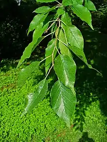 Ses feuilles vertes, caduques et simples sont alternes. Elles mesurent 8 à 13 centimètres de long et 5 à 8 centimètres de large et sont épaisses et fermes. Les aisselles des feuilles contiennent des épines redoutables de 2,5 cm de long à maturité. Les feuilles virent au jaune en automne.