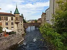 Orbe, sa rivière éponyme et les anciens moulins Rod, avec leur passerelle. - La Villa gallo-romaine d'Orbe-Boscéaz