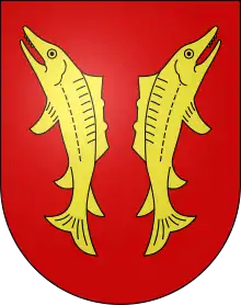De gueules à deux bars adossés d'or. Les armoiries de cette commune figurent déjà sur la façade de l'église, du début du XVIe siècle, et sur des sceaux de la même époque. Ce sont les armoiries de la famille de Montfaucon, à laquelle l'empereur Frédéric Barberousse a donné une moitié d'Orbe vers 1168, et qui acquit le reste en 1255[4].