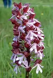 L'orchis pourpre et l'orchis militaire qui sont du même genre s'hybrident assez fréquemment et forment des populations aux fleurs au labelle très découpé mais de couleur proche de celle de l'orchis pourpre. C'est l' Orchis × hybrida Boeningh. 1830