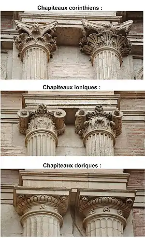 À ces trois ordres, on en ajouta successivement deux, qui sont l’ordre toscan et l’ordre composite.