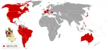 Devenant internationale, l'organisation se développe dans de nombreux pays étrangers, notamment au Canada, aux Philippines, Aruba, Australie, Bolivie, Brésil[1], Allemagne[2], Italie[3], Japon, Portugal, Panama, Colombie, Mexique...