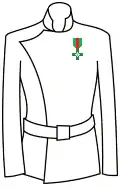 La croix est suspendue sur le côté gauche de la poitrine, soutenue par un ruban avec une bande rouge entre deux bandes vertes. Le ruban peut être porté sans la décoration.