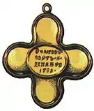 Croix d’Izmaïl, recto Pour son courage impeccable et l’avers Prise d’Izmaïl le . |