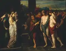 Un port maritime avec des navires au mouillage - Ermione est arrivée à Tauris, à la recherche de son mari Oreste (Aria : Io sperai di veder il tuo volto). Elle est accueillie par Pilade, fidèle ami d'Oreste, mais ils sont tous deux arrêtés par Filotete comme étrangers. Le roi Toante décrète que, conformément à la loi, Ermione et Pilade doivent être mis à mort en tant que sacrifices humains à la déesse Diana, mais change d'avis et ordonne que seule Pilade soit tué. Resté seule avec Ermione, il lui dit qu'il est tombé amoureux d'elle et lui sauvera la vie si elle se donne à lui. Elle refuse cette offre, après quoi il lui conseille de se méfier de sa colère (Aria : Pensa ch'io sono). Restée seule, Ermione déplore son sort (Aria : Dite pace e fulminate ). L'acte se termine par un ensemble de danses pour les marins grecs.