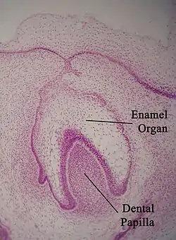 L’organe de l'émail ou organe adamantin est un groupe de cellules observé dans les coupes histologiques d'une dent en développement. Formé de cellules d'origine ectodermiques, il est situé au-dessus et autour d'une condensation de cellules mésenchymateuses appelées papille dentaire.