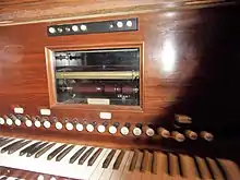 Console de l'orgue du château de Candé. | ||