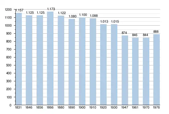 - Sources : INS, Rem. : 1831 jusqu'en 1970 = recensements, 1976 = nombre d'habitants au 31 décembre.