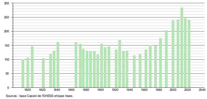- Fiches Insee - Populations légales de la commune pour les années 2006, 2007, 2008, 2009, 2010, 2011, 2012, 2013, 2014, 2015, 2016, 2017, 2018, 2019, 2020 et 2021.