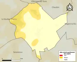 Le retrait-gonflement des sols argileux est susceptible d'engendrer des dommages importants aux bâtiments en cas d’alternance de périodes de sécheresse et de pluie. 29,8 % de la superficie communale est en aléa moyen ou fort (52,8 % au niveau départemental et 48,5 % au niveau national). Sur les 96 bâtiments dénombrés sur la commune en 2019, 5 sont en aléa moyen ou fort, soit 5 %, à comparer aux 70 % au niveau départemental et 54 % au niveau national. Une cartographie de l'exposition du territoire national au retrait gonflement des sols argileux est disponible sur le site du BRGM[19],[Carte 2].