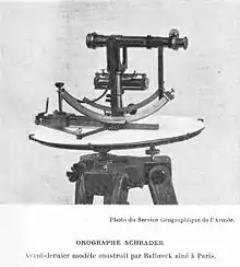 L'orographe[2] a été inventé en 1873 par Franz Schrader pour faciliter la cartographie des régions montagneuses en réalisant des « tours d'horizon ».