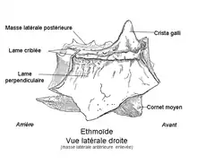 • face supérieure ou endocrânienne: s'articule avec la partie ethmoïdale de la face exocrânienne de l'os frontal ;