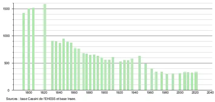 - Fiches Insee - Populations légales de la commune pour les années 2006, 2007, 2008, 2009, 2010, 2011, 2012, 2013, 2014, 2015, 2016, 2017, 2018, 2019, 2020 et 2021.