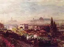 Peintre paysagiste, ses vues colorées rappellent son attirance pour la baie de Naples et les environs de Rome. Il a peint de nombreux paysages animés de petites figures, donnant un caractère anecdotique et doux à ses tableaux, notamment sa Scène dans un parc italien (Munich), et Crépuscule sur le Vésuve (Düsseldorf).