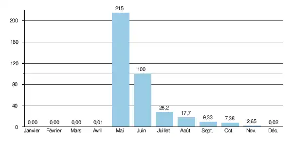 En ne considérant que la période estivale, libre de glaces (de mai à septembre inclus), le débit mensuel minimal observé a été de 0,49 m3/s en , ce qui implique l'existence d'étiages d'été parfois très sévères.