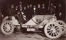 (nb: participation à la course automobile Paris-Madrid en 1903, sur Mercedes)