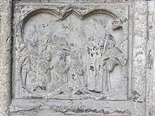 Saint Ouen sur le portail des Marmousets de l'abbaye Saint-Ouen de Rouen. | ||||||||