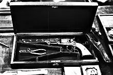 Les armes à feu font partie du quotidien de l'Ouest américain : en 1836, Samuel Colt invente un revolver simple dans laquelle les charges sont stockées dans un barillet. Construit selon les procédés industriels, il se diffuse rapidement dans tous les États-Unis. Cette arme, qui portera son nom, permet de très rapidement tirer six coups. Dans les années 1850, Smith et Wesson fabriquent la Winchester rifle. Les armes à feu contribuent à la violence meurtrière qui sévit dans l'Ouest, malgré les interdictions dans certaines villes. Face aux homicides qui ont lieu en général lorsque les hommes sont en état d'ébriété, les jurys populaires prononcent peu de peines de mort[16]. Les prostituées et les minorités (Chinois, Mexicains) sont aussi les victimes de cette violence armée. Dans plusieurs localités, les citoyens créent des comités de vigilance, dont les membres sont appelés « les vigilantes ». Face aux carences de la force publique et à l'indulgence des jurys, ils se font justice eux-mêmes : entre 1849 et 1920, ces comités exécutent 527 personnes, sans procès, le plus souvent par pendaison[17].