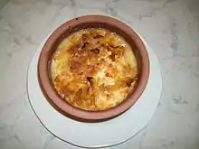 En général, la pâtisserie (pain, pâtisserie ou pâte feuilletée) est divisé en morceaux et mélangés avec des pistaches, des flocons de noix de coco, des raisins secs et beaucoup de sucre. Le lait, parfois avec de la crème, est versée sur le mélange, qui est ensuite saupoudré de cannelle. Enfin, le mélange est cuit dans le four jusqu'à ce que la surface soit bien dorée.