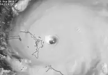 Image satellitaire de Dorian le au large des Bahamas, après son passage en catégorie 5 et son pic d'intensité. | ||||||||