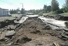 Les dégâts ont été majeurs dans le sud du Québec, notamment dans les régions de l'Estrie, de la Beauce et du Bas-Saint-Laurent. Les vents violents ont privé 250 000 foyers d'électricité, ont fait tomber plusieurs arbres et ont endommagé plusieurs bâtiments à Montréal[135],[136]. Plusieurs routes, dont celle dans Charlevoix menant au Saguenay et la route 276, à Saint-Frédéric, en Beauce, frappée par 112 mm de pluie[137], sont coupées par des glissements de terrain ou le débordement de rivières[135]. Le lundi matin, 29 août, un chauffeur de taxi dans sa voiture se trouve projeté dans la rivière Yamaska, proche de Sorel-Tracy, lorsqu'il tombe dans un ravin causé par un tel glissement. Il est porté disparu[138].