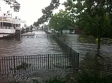 Les zones côtières sont celles qui ont le plus souffert à cause de l’onde de tempête et des inondations le long des rivières. Dans le nord-est des États-Unis, plus de dix rivières ont enregistré des niveaux records sur leurs hydrographes[70]. Dans au moins 6 États, les niveaux d’eau sont équivalents à une période de retour de cent ans et le Christian Science Monitor mentionne que l’inondation dans le comté de Greene dans l’État de New York atteignit une période de retour de 500 ans[71].