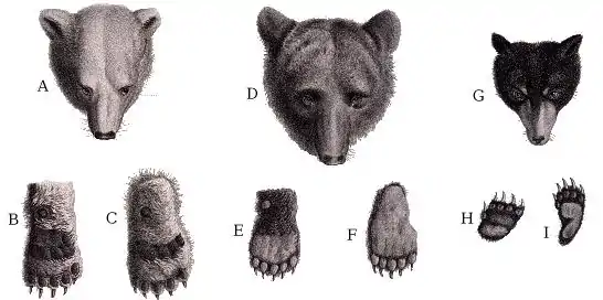 Parties caractéristiques de l'ours blanc, brun et noir :