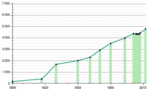 Alors que la population a plutôt stagné entre 1899 et 1926, elle a ensuite quadruplé pour atteindre 1 642 habitants en 1939. La population a ensuite continué à augmenter de manière moins forte jusqu'au recensement de 2010, avec 4 373 habitants. De 2010 à 2016, la population a stagné, avec même pour certaines années des baisses, mais la population remonte à nouveau depuis 2016, avec 400 nouveaux habitants entre 2016 et 2021. La population en 2021 est de 4 810 habitants.