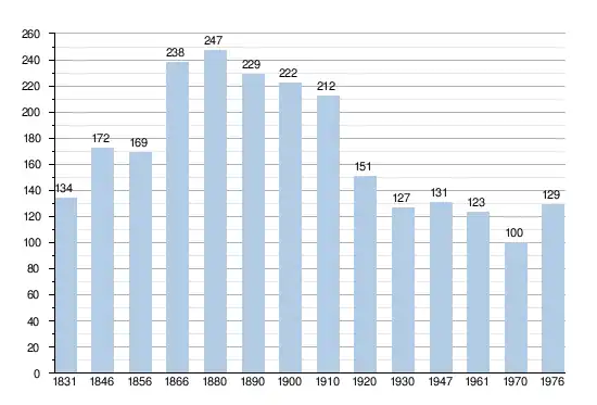 - Sources:INS, Rem:1831 jusqu'en 1970=recensements, 1976= nombre d'habitants au 31 décembre