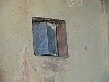 Plaque de blindage et créneau de protection d'une casemate d'action frontale.