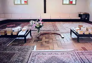 Elle peut alors pénétrer dans la Maison de la Sainte Parole, en se déchaussant et en revêtant une tunique blanche. Avant d'entrer dans la salle de prière, toute personne place sa main sur le bas du front, et se prosterne pour embrasser le sol[8],[56].