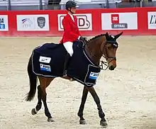 - Nice Stéphanie : Jument baie Selle suédois, née en 2004, par Cardento x Ralmé Z, propriété de Genevière Megret[25].