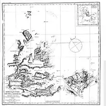 Carte de localisation de la péninsule Courbet dans l'archipel des Kerguelen. | ||