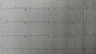 Ces anomalies sont diffuses dans toutes les dérivations et concordantes, sans image en miroir. Il existe rarement un aspect de bas voltage diffus lorsque l'épanchement est important. Il y a parfois des troubles du rythme auriculaire, fibrillation et flutter auriculaire[6].