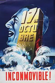 On peut dater la naissance du mouvement péroniste au quand les mobilisations populaires organisées par la CGT d'Ángel Borlenghi réussirent à libérer Juan Perón, qui avait été incarcéré par des militaires opposés à son influence croissante dans le gouvernement. À partir de ce moment, Perón devint le candidat officiel du régime pour l'élection présidentielle de 1946. Perón se présenta comme candidat du Parti travailliste, introduisant comme vice-président Hortensio Quijano, un radical de la dissidente Junta Renovadora. Les élections polarisèrent le pays : d'un côté le péronisme, soutenu par le gouvernement militaire, les syndicalistes de la CGT et des groupes radicaux, l'UCR, la Junta Renovadora (ou la FORJA où se côtoyaient personnalités reconnues comme Arturo Jauretche, Raúl Scalabrini Ortiz, etc.), et des conservateurs des provinces de l'intérieur, et de l'autre côté l'Union démocratique qui comptait dans ses rangs l'UCR et les partis socialistes et démocrates progressistes avec l'appui du Parti communiste, les conservateurs de la Province de Buenos Aires, et l'ambassadeur des États-Unis, Spruille Braden. Ce dernier fournit le thème récurrent de la campagne péroniste, basé sur le nationalisme et la justice sociale : Braden ou Perón. Peron triompha, avec 56 % des votes.