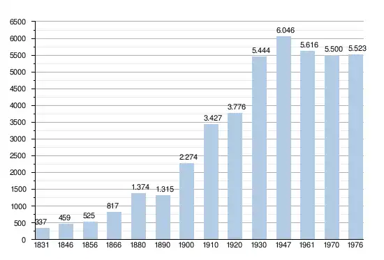- Sources : INS, Rem. : 1831 jusqu'en 1970 = recensements, 1976 = nombre d'habitants au 31 décembre.