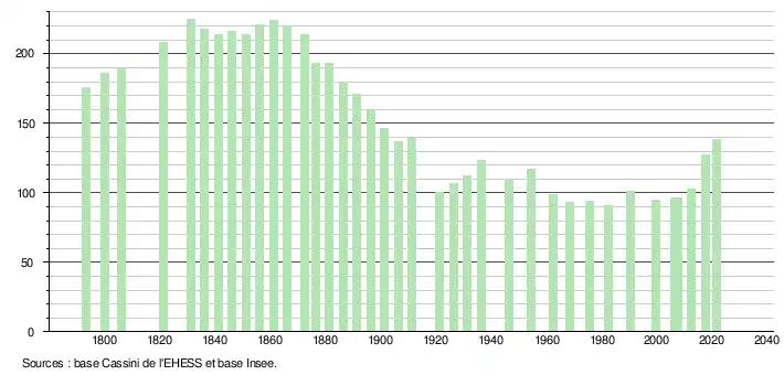 (Sources : Ldh/EHESS/Cassini jusqu'en 1999[19] puis Insee à partir de 2006[20].)