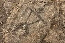 Exemple de pétroglyphes de Puʻu Loa : trous isolés et trou entouré d'un cercle. | |||