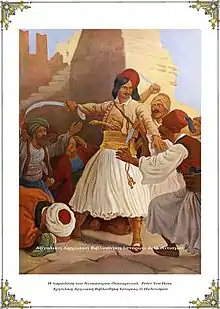 « A suivi l'abandon de Navarin. La flottille russe quitta le Péloponnèse entre le 26 mai et le 6 juin, n'emmenant avec elle que les chefs de la révolte : quelques évêques et des notables. La foule, qui implorait en vain leur aide, fut contrainte de se réfugier dans l'îlot voisin de Sphactérie pour se sauver. La plupart d'entre eux furent exterminés par les Albanais »