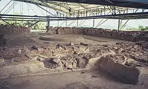 La région de Pylos a une longue histoire, qui va de pair avec celle du Péloponnèse. Son commencement se perd dans les profondeurs de la préhistoire, car elle est habitée dès le Néolithique, lorsque des populations venues d'Anatolie commencent à se diffuser dans les Balkans et en Grèce vers 6 500 ans av. J.-C., en apportant avec elles la pratique de l'agriculture et de l'élevage. Les fouilles ont montré une présence humaine continue dès le néolithique tardif (5 300 av. J.-C.) dans plusieurs sites de Pylie, dont en particulier ceux de Voïdokiliá et de la grotte de Nestor, où ont été retrouvés de nombreux ostraca ou fragments de céramiques peintes, noires et polies, ainsi que des poteries plus tardives, gravées et écrites[3]. La période du Néolithique prend fin avec l'apparition de la métallurgie du bronze, à partir d'environ 3 000 ans av. J.-C.